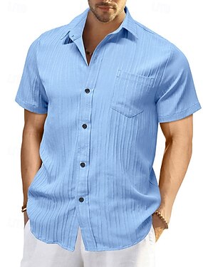 Per uomo Camicia Maglia a coste Camicia casual Nero Bianco Blu reale Marrone Verde Manica Corta Semplice Strisce verticali Colletto a Camicia Casuale Quotidiano Bottoni Abbigliamento Elegante Moda
