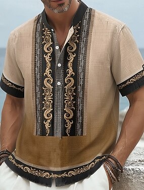 Per uomo Etnico Camicia Camicia di lino Maglia Henley Manica Corta Casual Tribale Quotidiano Vacanza Estate Primavera Collo alla coreana Stampato Blu Verde Cachi