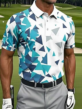 Per uomo Geometrico Golf Polo Sportivi Manica Corta Magliette polo Camicie con Colletto Casual Athleisure Bottoni Estate Primavera Blu Bianco Verde