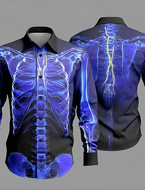 Costumi da Uomini Scheletro Camicia Camicia Button Up Maniche Lunghe Stile Punk Goth Scuro All'aperto Vacanze Estate Primavera Colletto Stampa 3D Camicie nere viola viola