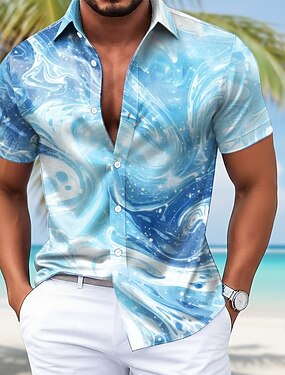 Per uomo Marmo Colore sfumato Arte liquida astratta Camicia Camicia in raso Camicia elegante Manica Corta Moda Casual Quotidiano Vacanza Estate Primavera Collo ripiegato Camicie con Colletto Stampa