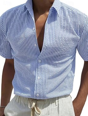 Per uomo Camicia button-down Camicia casual Camicia di Seersucker Nero Giallo Verde chiaro Rosa Viola Manica Corta A righe Bavero Casuale Quotidiano Bottoni Abbigliamento Streetwear Casual