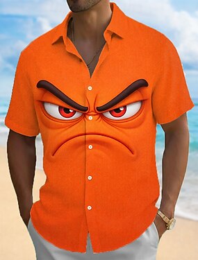 Per uomo Cartoni animati Divertente Faccia Sorridente Camicia Camicia Estiva Camicia con Bottoni Manica Corta Moda Casual All'aperto Vacanza Abbigliamento Quotidiano Estate Primavera Collo ripiegato