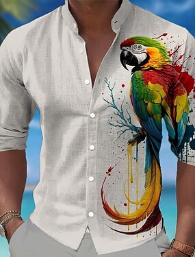 Per uomo Animale Uccello Pappagallo Camicia Camicie hawaiane Camicia con colletto alla coreana Manica Lunga Hawaiano Casuale Vacanza Primavera Autunno Collo alla coreana Colletto alla coreana Stampa