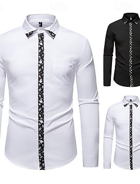 Per uomo Camicie Camicia abbottonata Camicia con colletto A pois Matrimonio Esterno Nero Bianco Rosso Blu marino Manica lunga Collo ripiegabile Estate Primavera Abbigliamento Stampa