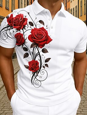 San Valentino Per uomo Rosa Polo Manica Corta Magliette polo Camicie con Colletto Casual Athleisure Ferie Abbigliamento da vacanza Bottoni Estate Nero Bianco
