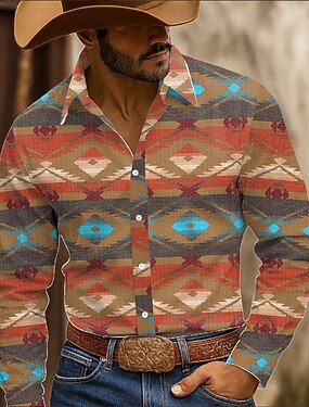 Per uomo Motivo Geometrico Etico / africano Camicia Camicia Western Camicia da cowboy Manica Lunga Vintage Retrò All'aperto Casuale Abbigliamento da lavoro Primavera Autunno Collo ripiegato Stampa 3D