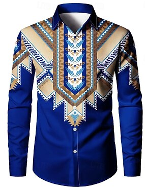Per uomo Etnico Cultura indiana Modello Navajo Camicia Camicia con Bottoni Camicia casual Manica Lunga Vintage Retrò Vacanza Quotidiano Abbigliamento casual alla moda Estate Primavera Collo ripiegato
