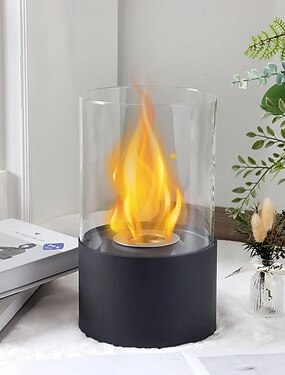 braciere da tavolo portatile con vaso cilindrico in vetro alto 26 cm, camino da tavolo a bioetanolo a combustione pulita, camino senza canna fumaria per feste ed eventi in patio all'aperto e al chiuso