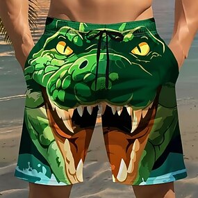 Per uomo Cartoni animati Coccodrillo Squalo Costumi da bagno Pantaloncini da mare Pantaloncini da Surf Misura del girovita medio Divertente Vacanza al Mare Tasche Laterali fodera in rete Coulisse