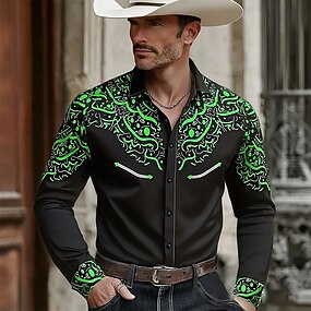 Per uomo Geometrico Sfumatura Onde Camicia Camicia con colletto alla coreana Manica Lunga Moda Casual Abbigliamento Quotidiano Ferie Primavera Autunno Collo alla coreana Colletto alla coreana Stampa