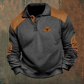 Per uomo Maglietta Waffle Maglia Henley a nido d'ape Camicie da uomo con toppe sui gomiti Manica Lunga Bavero Zip a un quarto Autunno Primavera & Autunno Tinta unica Moda Essenziale Casual Tasche