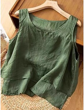 Canottiera in Cotone Lino da Donna Top a Spalla Arricciata Monocromo Elegante Casual Senza Maniche Collo A Giro Piani Regolari Giornaliero Nero Bianco Verde Estate