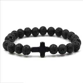 Per uomo 1 pc Gemelli Braccialetto con perline Braccialetto di buona fortuna Compleanno Giornaliero Croce laterale Di tendenza Natura Nero