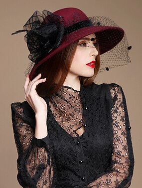 stile vintage elegante 100% lana / cappelli in organza / copricapo con berretto / tinta unita / tulle 1pc occasione speciale / festa / copricapo da sera natale / occasione speciale / ufficio &