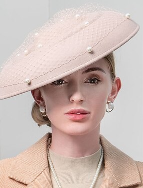 alla moda elegante tulle / cappelli di lana 100% con perle / tulle 1pc per feste / sera / copricapo per le vacanze / cappelli di paglia con fiocco in raso casual / copricapo per le vacanze /
