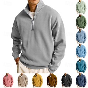 Per uomo Felpa con cappuccio Maglia Maglione Felpa con zip corta Blu denim Nero Giallo Verde chiaro Rosa Colletto Mao Mezza zip Semplice Cerniera Sport & Outdoor Casuale Quotidiano Streetwear Cool