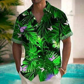 Per uomo Foglia Piante Tropicali Camicia hawaiana estiva Camicia con Bottoni Camicia Aloha Manica Corta Hawaiano Casuale Vacanza Estate Primavera Collo ripiegato Stampa 3D camicie con colletto Una