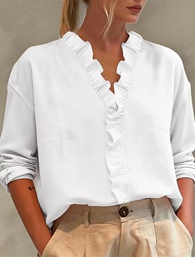 Camicie da donna 100% cotone, camicetta con bottoni, tinta unita, basic, casual, manica a 3/4, scollo a V, top regolari, per tutti i giorni, nero, bianco, rosso, kaki, estate