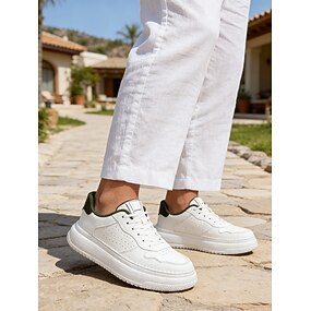sneakers bianche premium da uomo, in similpelle elegante, perfette per le gite in resort all'aperto e per un abbigliamento estivo rilassato