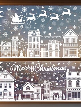 9 fogli di adesivi murali natalizi per finestre, decorazioni, case di neve, pupazzi di neve &Babbo Natale, adesivo statico, vetrina &decorazioni in vetro per la casa
