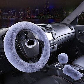 Coprivolante per auto in peluche, 3 pezzi/set, soffice e spesso, in morbida lana invernale, rosa, blu, viola, nero, rosso e grigio, per volante da 38 cm