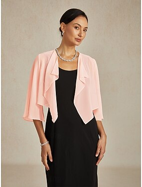 Per donna Bolero Pieghettato Metallico Tinta unica Elegante Manica 3/4 Girocollo Ospite di nozze Semi-Formale Abito da cocktail Argento Estate Primavera Autunno