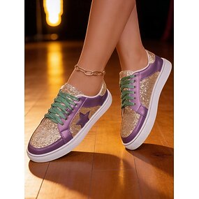 Sneakers glitterate da donna per il Mardi Gras con pannelli metallici colorati scarpe casual con lacci scintillanti per parate di Carnevale feste e costumi da strada