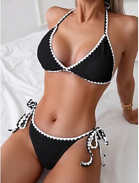 Costume da bagno da donna bikini a 2 pezzi con slip sbarazzini schiena scoperta abbigliamento da spiaggia per le vacanze costumi da bagno senza maniche a collo halter di colore solido