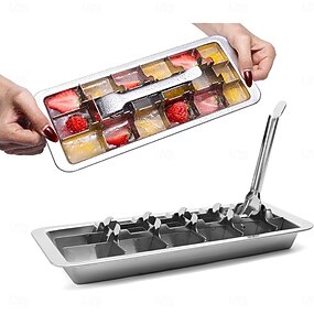Vassoio per cubetti di ghiaccio in acciaio inox a 18 scomparti con maniglia per un facile rilascio, vassoio per il ghiaccio rimovibile per la preparazione di cubetti di ghiaccio e alimenti surgelati,