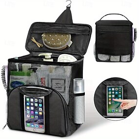 organizer da doccia impermeabile da appendere con 7 supporti flessibili. borsa da toilette in rete ad asciugatura rapida con tasca touch-friendly per smartphone borsa da doccia con montaggio a parete
