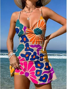 Per donna Costumi da bagno Tankini Gonna Costume da bagno Coulisse Maglia Elegante Vacanza Floreale Grafico Collo a U Senza Maniche Costumi da bagno