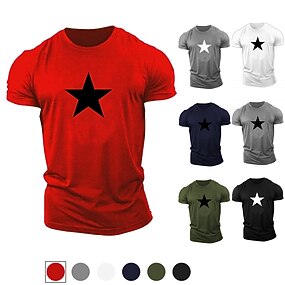 T-Shirt Grafica da Uomo a Maniche Corte con Stampa di Stella Bianca su Grigio