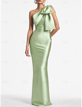 Tubino Colonna Lunghezza al pavimento Abiti da Ballo Abito da Sera Da principessa Abito formale Elegante Manica Corta Monospalla Matrimonio Formale Raso con Fiocco/Fiocchi