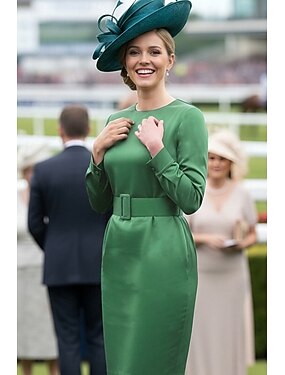 Tubino Colonna Lunghezza al ginocchio Abito Derby Abito da cerimonia per signora Manica Lunga Girocollo Elegante Semplice Derby del Kentucky Raso con Fascia / Nastro