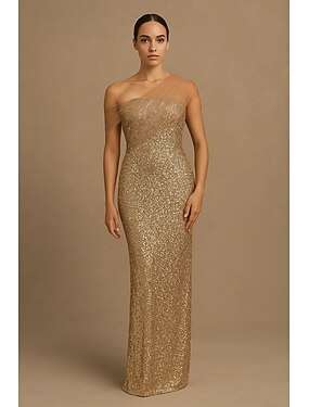 Tubino Colonna Lunghezza al pavimento Abiti da Ballo Abito da Sera Da principessa Abito formale Elegante Stile Celebrità Tappeto rosso Senza Maniche Senza Spalle Festa serale Festa in giardino Con