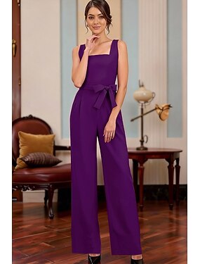 Tute Lunghezza al pavimento Abito da cerimonia per signora Senza Maniche Collo quadrato Elegante Formale Ospite di nozze con Tinta unita