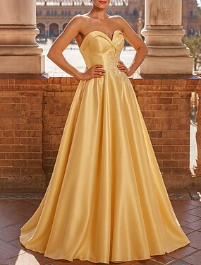 Linea ad A Lunghezza al pavimento Abito da invitata a nozze Abito Formale Abito da sera Abiti da Ballo Elegante Festa Senza Maniche Senza Spalline Balli di fine anno Festa in giardino Raso con Blocco