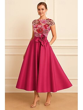 Linea ad A Lunghezza Tè Vestito da Festa Abito da Cocktail Abito da invitata a nozze Abito da cerimonia per signora Manica 3/4 Scollo a Barca Elegante Vintage Cocktail Formale Ospite di nozze Raso con