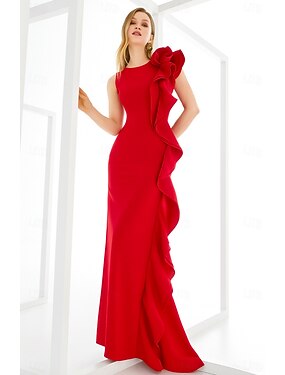 Tubino Colonna Lunghezza al pavimento Abito da invitata a nozze Abito Formale Abito da sera Abiti da Ballo Elegante Senza Maniche All'americana Balli di fine anno Formale Tessuto Elasticizzato con