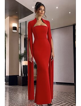 Tubino Colonna Lunghezza al pavimento Abiti da Ballo Abito da Sera Da principessa Abito formale Elegante Setoso Senza Maniche Senza Spalle Matrimonio Formale Mantelle Velluto con Scialle