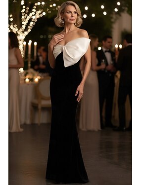 A-Line Abito Prom Lunghezza Piena Abito da Festa Abito Cocktail Abito Madre della Sposa Manica Senza Maniche Strapless Elegante Vintage Lussuoso Formale Serale con Plissè