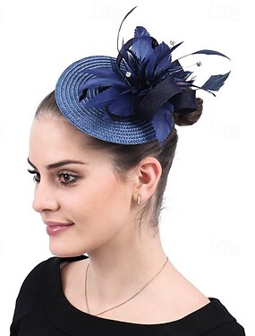 Fascinator Lino Matrimonio Compleanno Elegante Vintage Carino Con Piuma Floreale Copricapo Copricapo