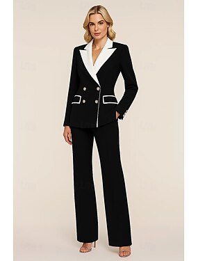 Per donna Abiti da 2 pezzi Formale Ospite di nozze Crepe Elasticizzato Elegante Vintage Minimalista Manica Lunga Lunghezza al pavimento Risvolto a punta Doppiopetto