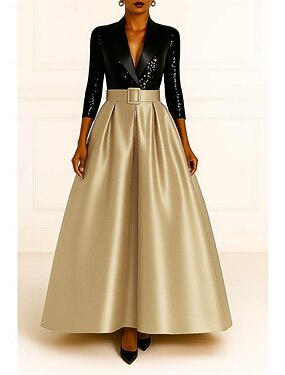 Per donna Abito da smoking Linea ad A Matrimonio Formale Ospite di nozze Raso Elegante Vintage Manica 3/4 plissettata Lunghezza alla caviglia Bavero sciallato