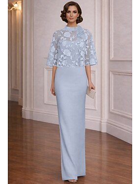Tute Lunghezza al pavimento Abito da cerimonia per signora Manica Corta Girocollo Elegante Semplice Formale Ospite di nozze Riunione di famiglia Tessuto Elasticizzato con Tinta unita