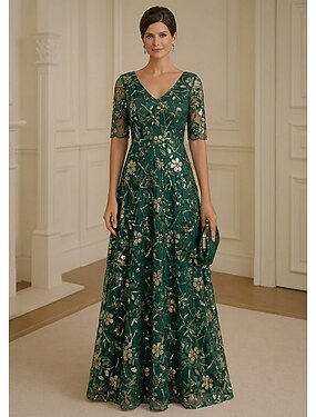 Linea ad A Lunghezza alla caviglia Abito da invitata a nozze Abito da sera Abito da cerimonia per signora Mezza Manica Scollo a V Elegante Semplice Abbellito Formale Ospite di nozze Derby del Kentucky