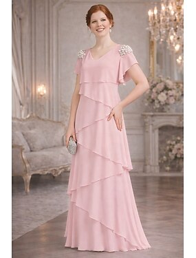 Linea ad A Abito Lunghezza al pavimento Abito da invitata a nozze Abito Formale Abito da sera Abito da cerimonia per signora Manica Corta Girocollo Elegante Semplice Casual Formale Chiffon Scialli con