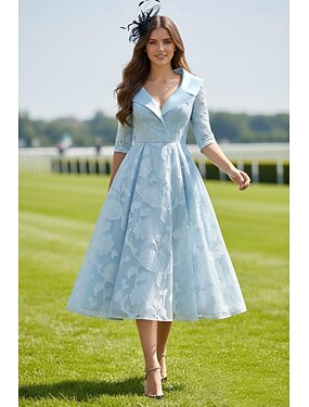 Linea ad A Lunghezza Tè Vestito da Festa Abito da Cocktail Abito da invitata a nozze Abito da cerimonia per signora Manica 3/4 Colletto a Camicia Elegante Vintage Formale Cocktail party Derby del