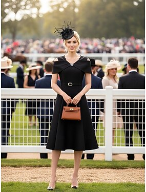 Abito nero in linea A lunghezza caviglia lunghezza ginocchio abito da festa abito da cocktail abito per la madre della sposa manica corta collo a giro collo a V elegante vintage festa formale